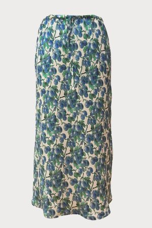 Wallace Rose Belinda 100% polyester twill floral long bias skirt on elastic waistband with drawstring tie.