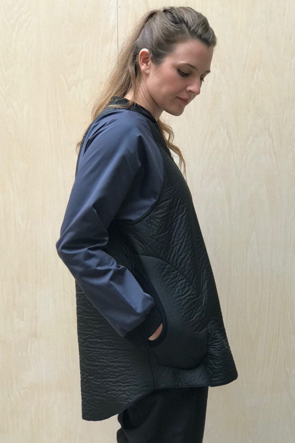 Wallace Rose Calvin 100% waterproof nylon zip raincoat, with contrast 100% nylon sateen sleeves, and patch pockets. Inner body lined in polarfleece.