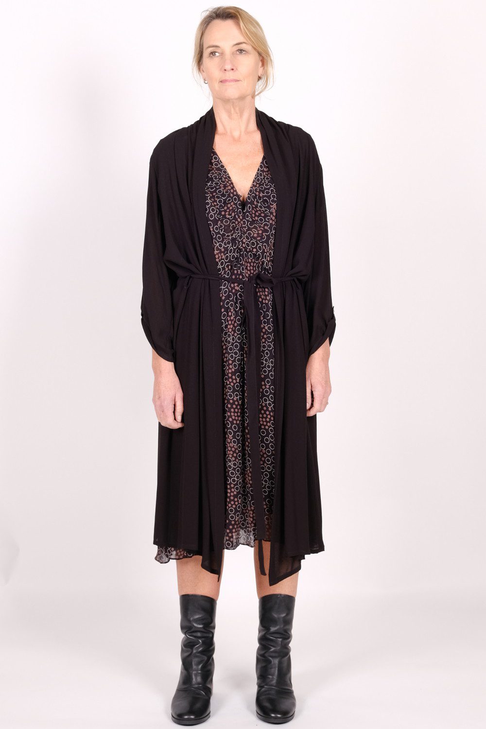 Donna 100% viscose crepe wrap coat dress.