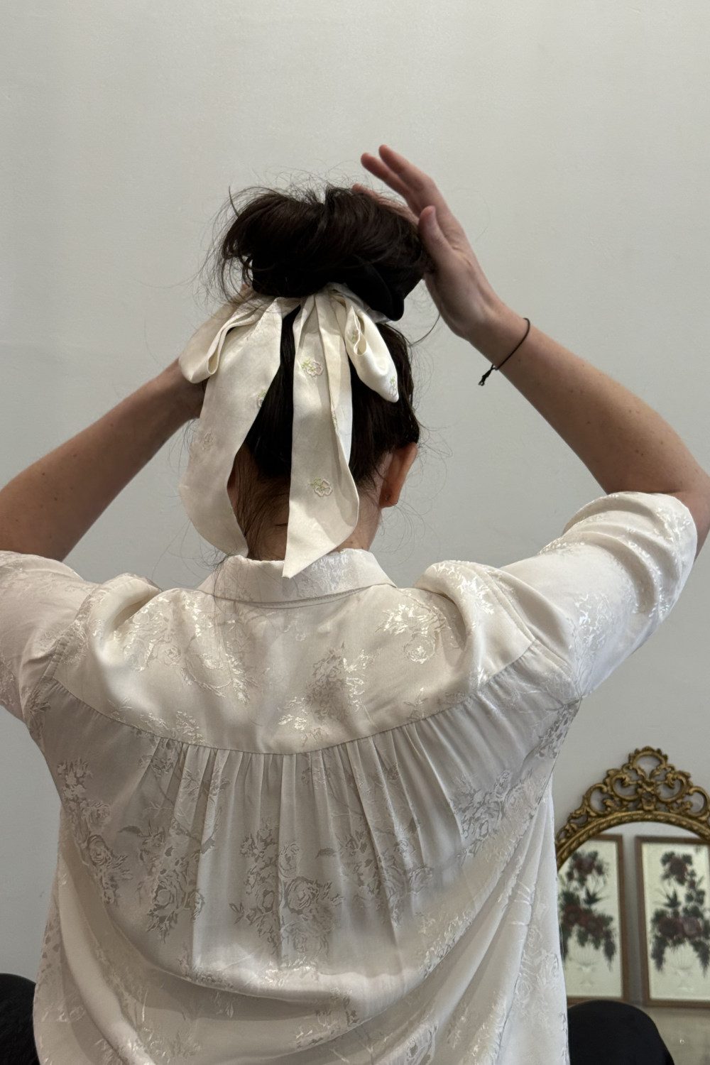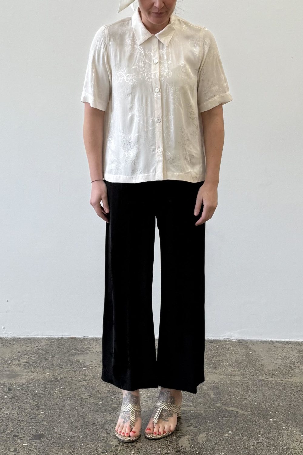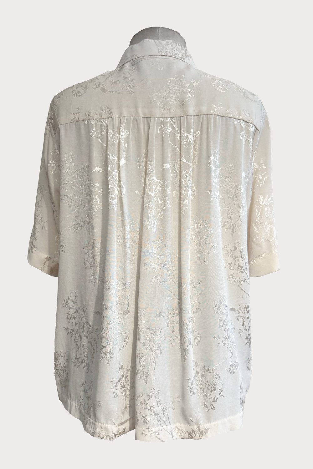 Wallace Rose Faye 80% rayon/20%polyester brocade short sleeved shirt with gathered back.