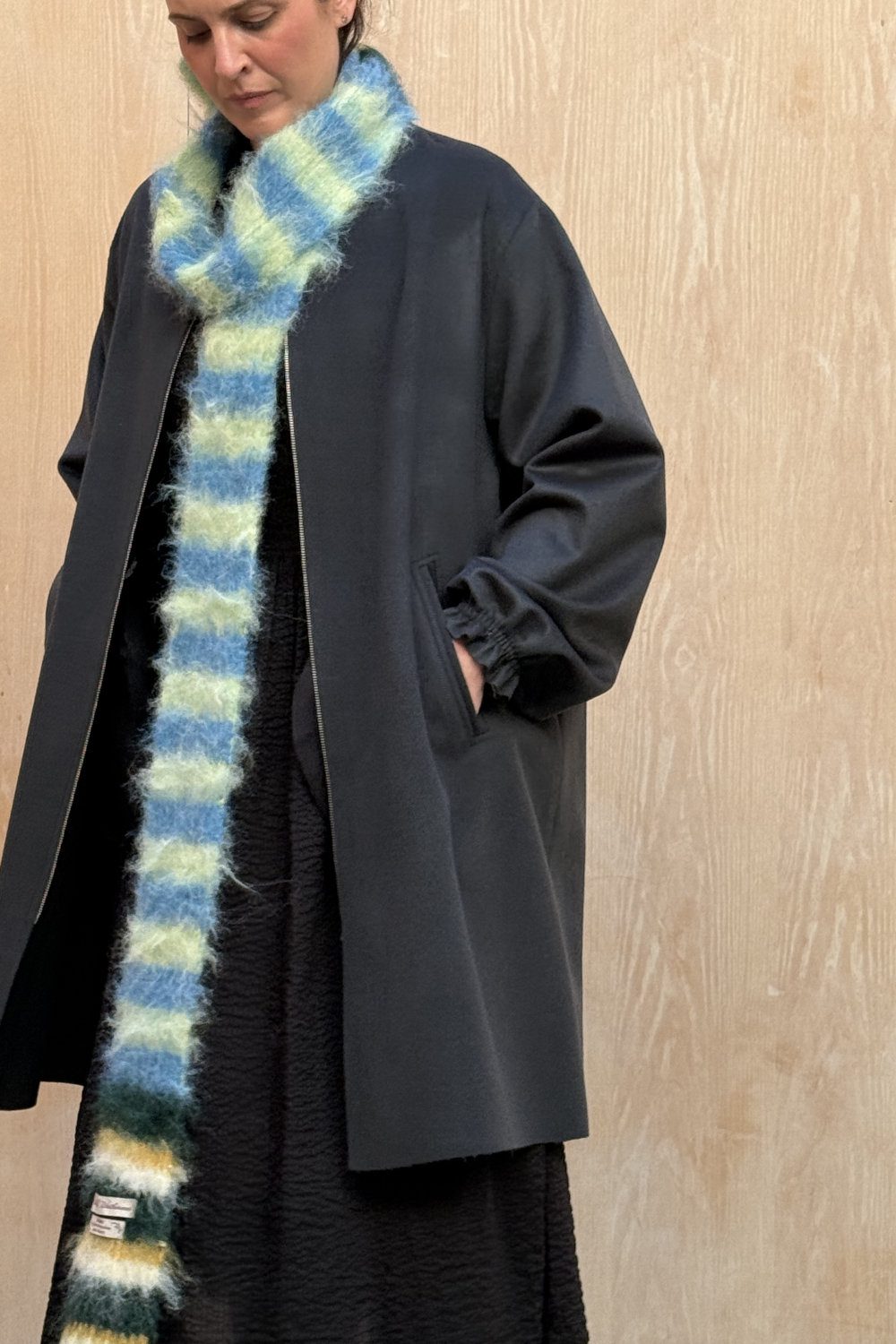 Wallace Rose Greyson 100% wool zip coat with side pockets.