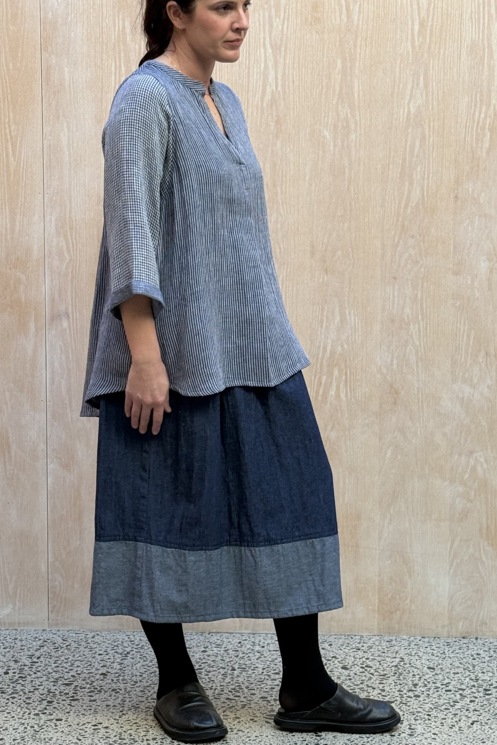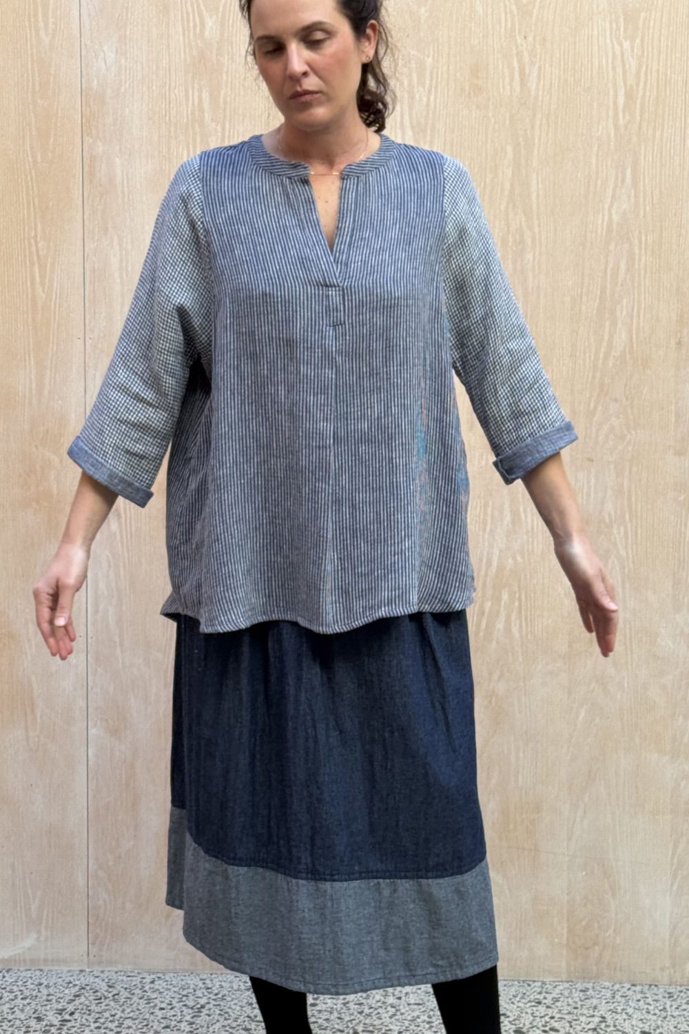 Wallace Rose Juno 100% double layer soft cotton tunic with back pleat and 3/4 sleeve.