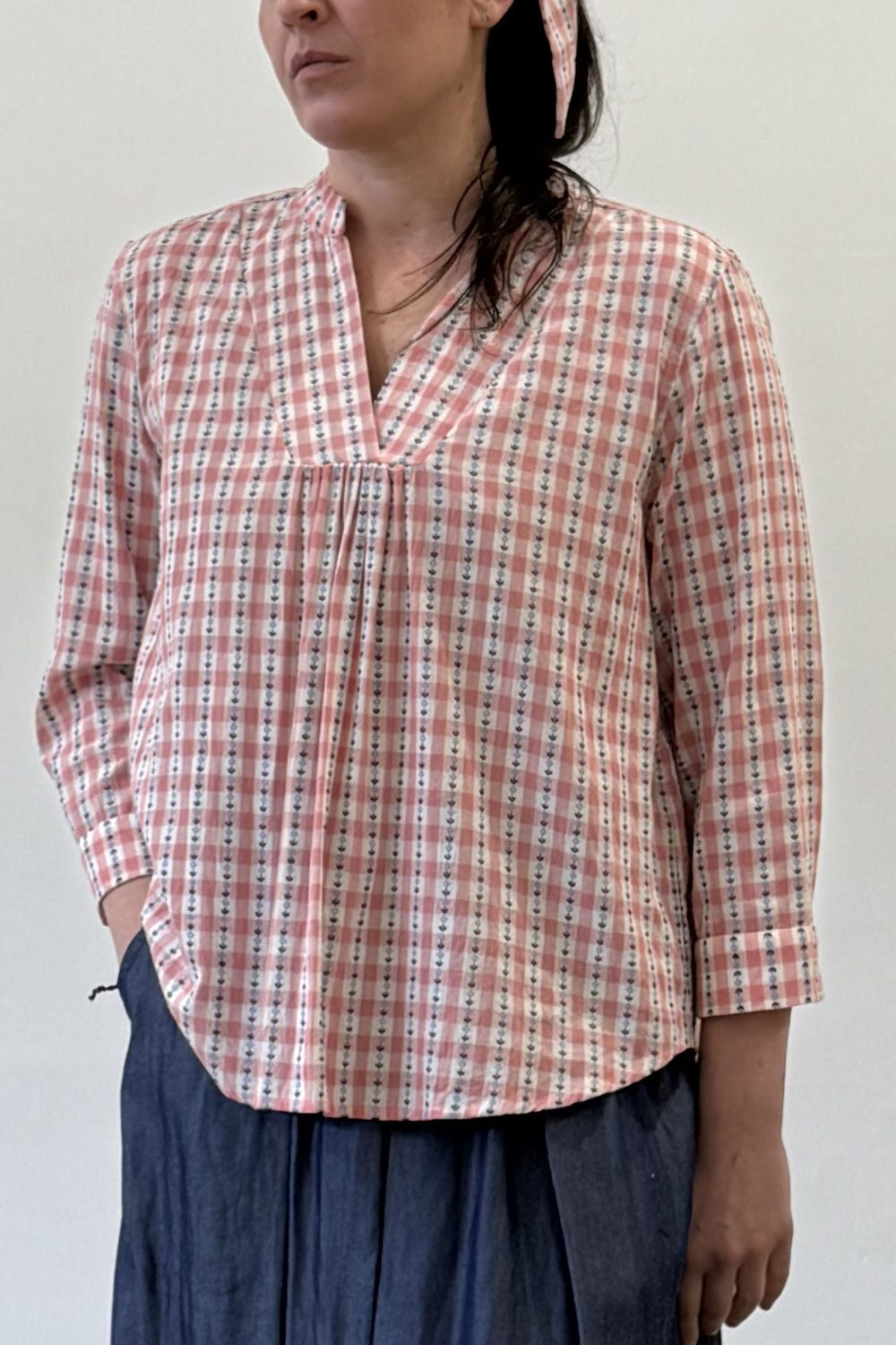 Wallace Rose Skye 100% cotton woven check v-neck tunic top with gathered front and back.