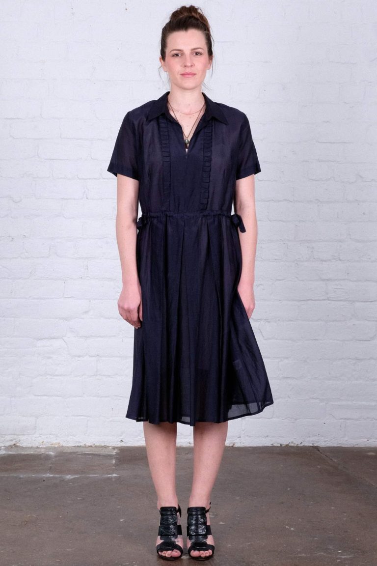 Sofie 100% viscose, semi-fitted pleat front dress.