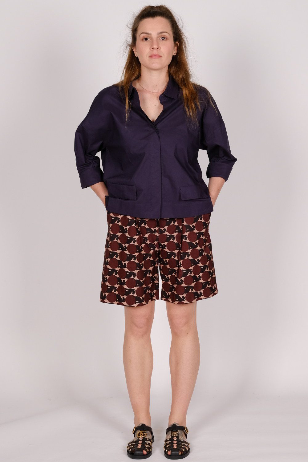 100% cotton print, drawstring, pleat front and gathered back shorts.